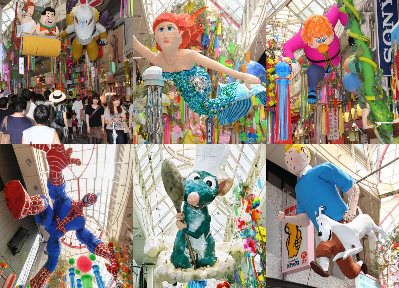 The shopping arcade and other shopping streets near Asagaya Station will be filled with not only decorated bamboo wish trees, but also papier-mâché ornaments that come in the shape of manga characters, sports heroes, fictive space ships and pretty much anything else one can imagine.