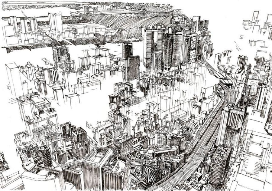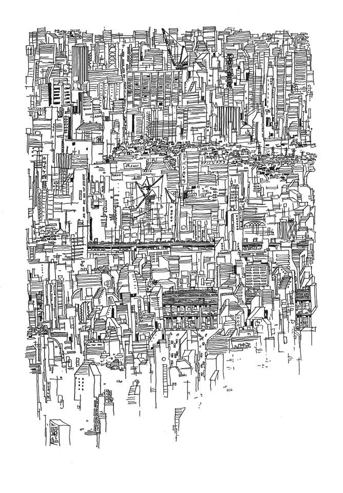 “Architecture in Katsuhiro Otomo’s Akira and in Masamune Shiro’s Ghost in the Shell is almost a character, while the characters in the stories are in awe of their city.” — says Simon Kalajdjiev, an artist and designer, now working as an architecture illustrator in Tokyo. He was stricken by Tokyo’s urban look in anime and manga and that influenced his cityscape drawings.