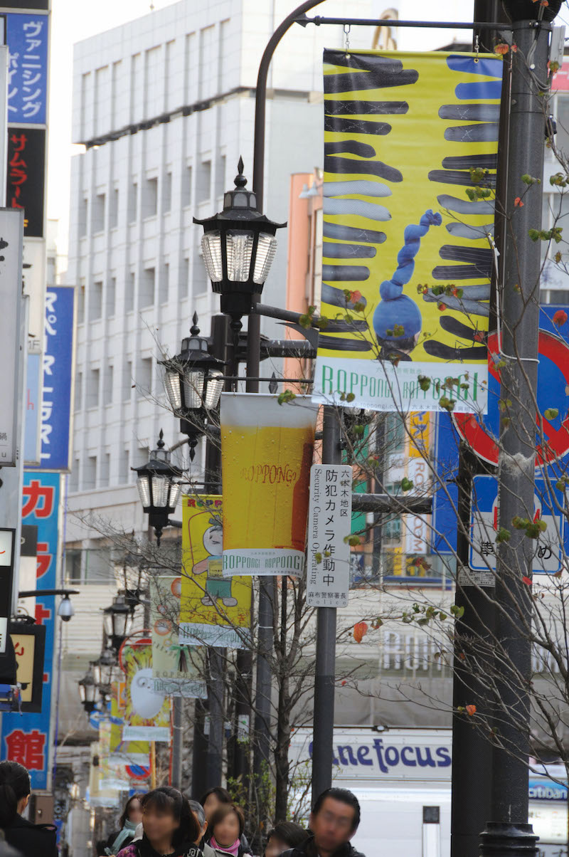 When visiting Roppongi, as you enjoy its fine art museums and galleries, be sure to spend time exploring the sights and sounds of its streets and see firsthand how creative festivals and events are reshaping this iconic area.One such event is the annual “Roppongi Designer’s Flag Contest”. Flags of various designs are hung from 135 lampposts lining the five streets that come together at Roppongi’s large intersection.