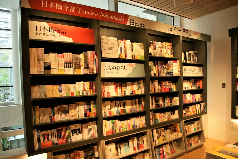 書店部分,以社科人文的書籍為主,大部分皆是日文書,但在誠品選書部分也有陳列由台灣書店精選出來的書籍,或是部份台灣繪本作品,另外店內還有日本橋今昔的書籍陳列專區,想要掌握日本橋的過往今來,這裡應該會是不錯的選擇。配合開幕,誠品生活expo展示區則以「浪漫台灣!人情味萬屋」為主題,展示足以代表台灣復古年代生活情趣的雜貨商品,也和知名老舖「銀座木村屋」合作推出誠品麵包。文具系列也推出日本橋店限定的商品,喜歡收集文具的人可以注意一下。