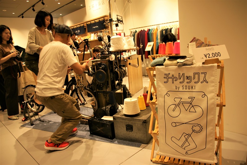 另外包括初次在日本展店郭元益,帶來台灣式的落雁糕點;台灣茶香水專賣店P.Seven則推出日本橋限定版的金萱茶香水,將原本前味帶有檜木的味道拿掉,更顯得清香迷人;有專業茶師坐鎮的王德傳,示範台灣道地的功夫茶;還有結合漢方推出保養品,或是漢方藥材小零嘴等特色商品的DAYLILY;以及知名台菜料理餐廳「富錦樹台菜香檳」等店,皆值得一訪。至於喜歡日本工藝作品的人,建議可以到工場十貨店尋寶。這裡聚集日本各地特色工場自製品牌商品,提案產地直送的新生活型態。其中,最特別的則屬店頭一台可以邊騎腳踏車邊織出襪子的機器─「チャリックス(charix)」。由奈良的襪子工廠「SOUKI」推出的創意發想,希望吸引更多人注視到奈良縣廣陵町的襪子生產業。一雙2,000日圓,可以任意選擇三種喜歡的色線,踩踏腳踏車約10分鐘就可以完成一雙襪子。相當有趣,開幕期間(9月27日至10月6日),有空的人不妨試試看這個有些無厘頭的創意體驗DIY。