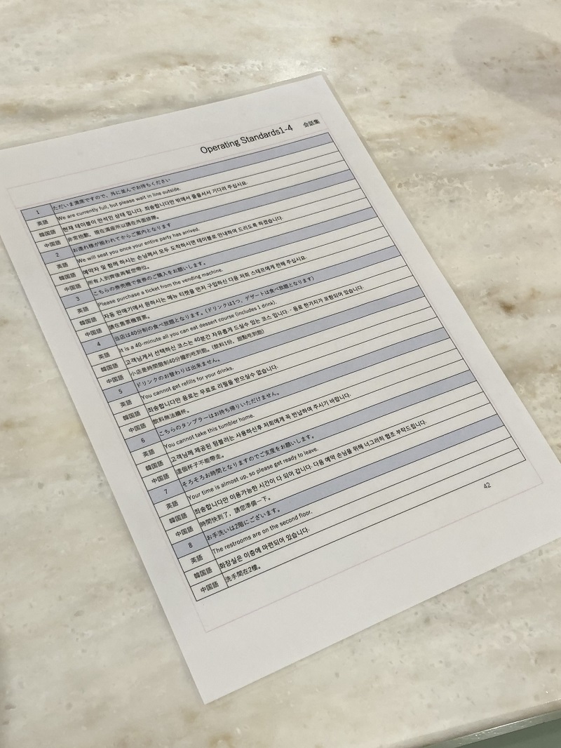 這裡不只有華麗的店面設計而已,點心的口感和味道也是貨真價實的美味,費用也算實在,不過店開在熱鬧的原宿,加上只能現場排隊,到時想要入內消費,勢必要花不少時間等待。建議可以三五好友同行,一起聊天打發時間。店內是採購買餐券的方式提供服務,簡單明瞭且有中、英、韓三國語言的手指板,加上店員也會簡單的英文對話,所以不用擔心語言不通的煩惱。