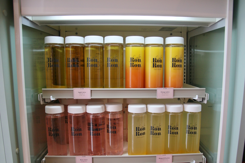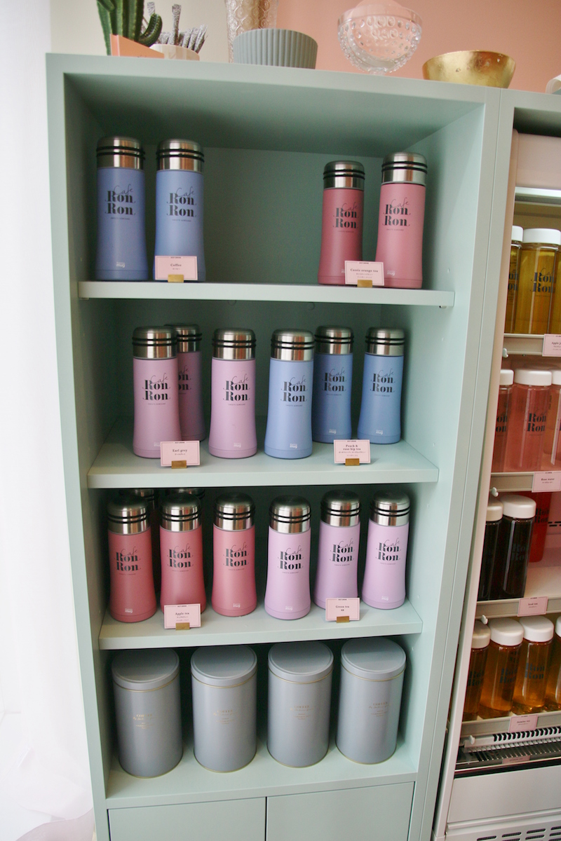 室內裝潢設計也是走女孩們喜歡的粉嫩色調,用餐的地方為一樓,共有44個座位,空間算是相當寬敞。店內提供約35種點心(25種甜點和10種三明治、漢堡等鹹點心),限時40分鐘,任你吃到飽,只要1,800日圓(含稅),還附加一份飲料,可以從果汁、熱茶或咖啡等種類豐富的飲品中任意選擇。造型可愛的瓶子搭配甜點,一起拍照,正好適合喜歡「曬IG」或是臉書打卡的人拍照留念。不過,可惜的是,瓶子是非賣品,只能在店內使用,無法帶回家。至於未喝完的飲料,則可用紙杯外帶回家,也算是貼心的服務。