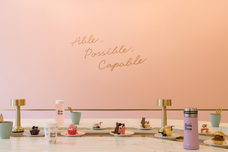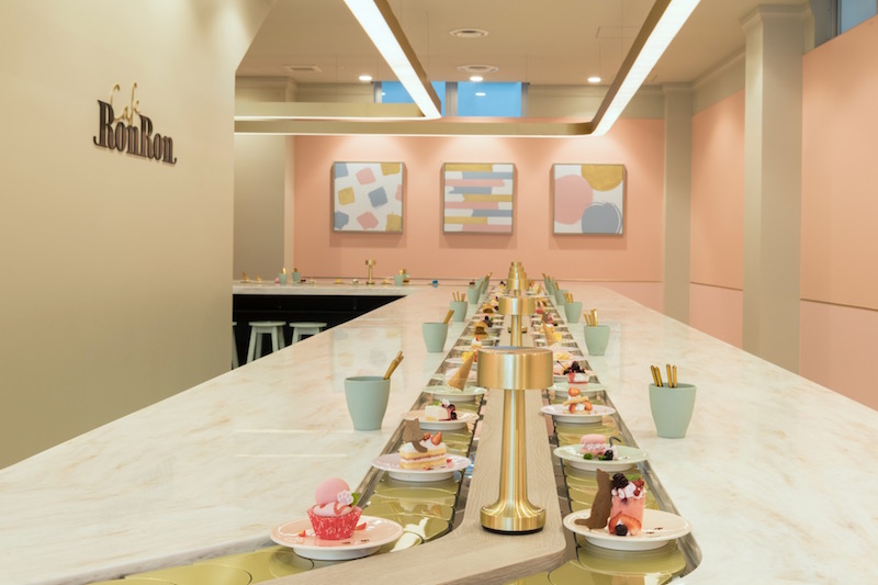 迴轉甜點專賣店「MAISON ABLE Cafe Ron Ron」是由日本不動產業者「ABLE」和營運餐飲店有成的「TRANSIT GENERAL OFFICE」企劃合作的甜點店,地點就挑選在原宿的巷內裡,和「ABLE」旗下的服裝出租店「airCloset」比鄰而居。