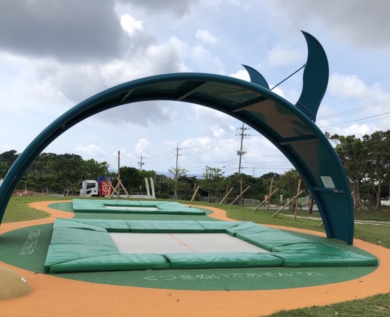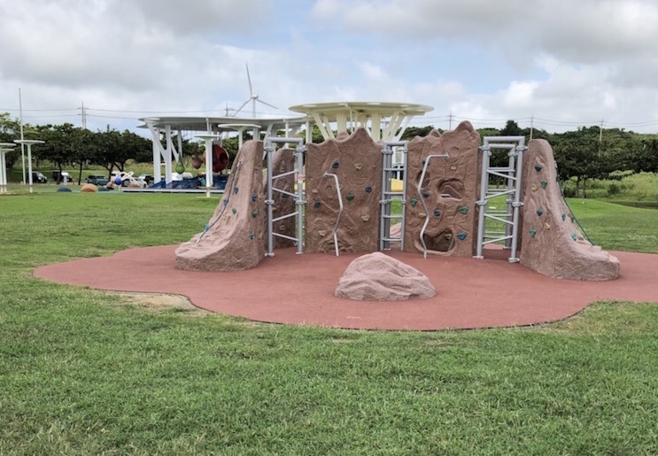 平和祈念公園位於系滿市,主要紀念沖繩的戰亡者,同時也是許多觀光客或日本人會來拜訪的聖地。公園佔地廣大,整體面積約47公頃,主要分為禱告區、廣場區、和平區和遊樂區四個區域。其中最吸引親子行的就是遊樂區了,佔地約是兩個小學操場大小,因此遊具不會全擠在一起。廣場裡隨處可見涼亭跟大樹,也有許多日本幼兒園在中午帶孩子來野餐,用完餐就在遊樂區玩耍,因此可看到許多孩子玩樂奔跑。各區遊具也有許多小巧思的設計,光一個區域就可以讓孩子玩20分鐘以上!