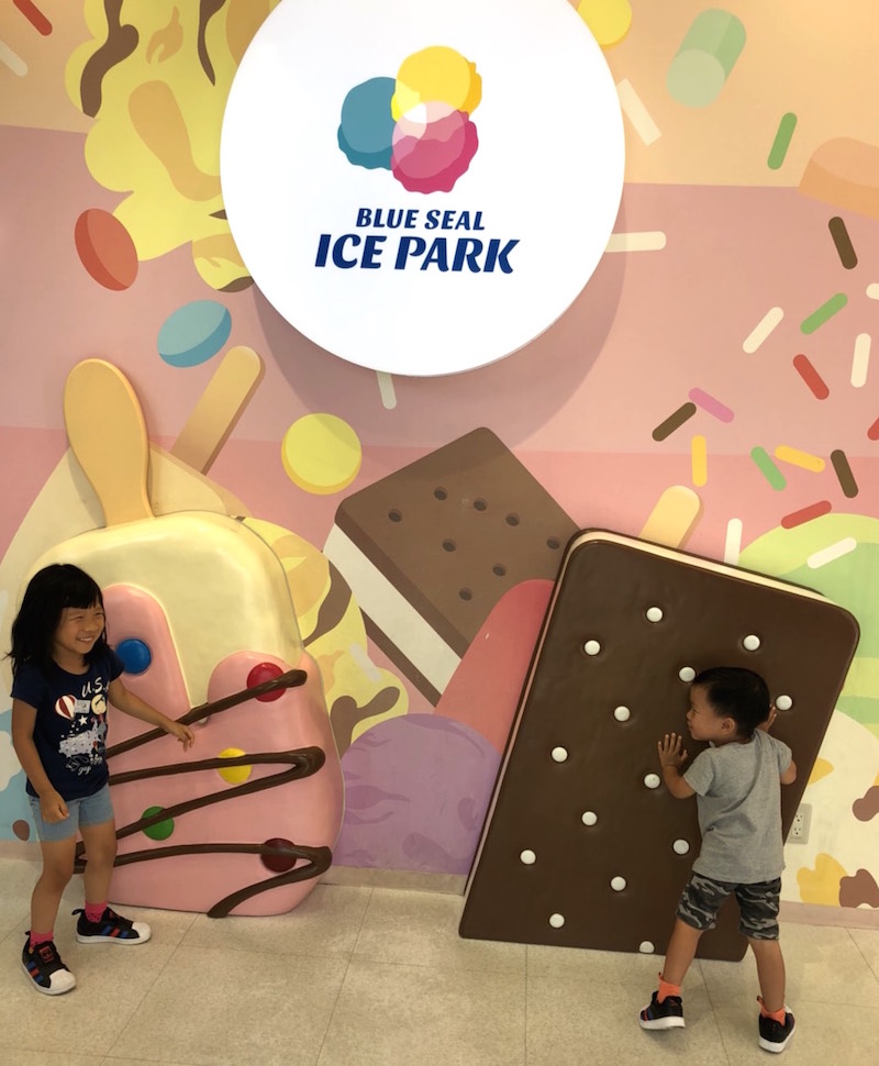 ICE PARK就像是一座BLUE SEAL的冰淇淋博物館,除了賣冰淇淋、冰棒、美式食物和周邊商品之外,也展示了品牌發展至今的歷史背景。馬卡龍色的繽紛外觀超吸睛,非常適合拍照,入內參觀雖然免費,若要體驗自製冰棒就必須付費,建議先上網預約。冰棒體驗費用為1,500日圓(2018年4月1日起),內容有彩繪冰棒、零下20度體驗(據說是冰棒最美味的溫度)、擠霜淇淋體驗(自己擠一支霜淇淋,能轉幾圈各憑本事),還會送一個保冰袋,費用很划算!一場體驗活動約可容納48人,除了主持人解說外,也提供中、英文字幕說明,所以不用擔心會聽不懂!