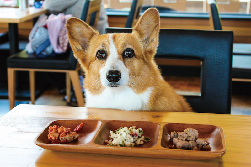 在往返伊東半島東側城崎海岸的路途中,有間招牌很大的「愛犬休息站」。這是一間歡迎寵物入內的主題休息站,有室內外的狗狗遊戲場,也有提供餐點,同時販賣各式各樣的寵物用品。我挑選了一些零食與寵物用品給巧比,也幫巧比跟自己各點了餐。難得可以吃到肉丸的巧比,幾乎是用光速狼吞虎嚥地將盤子裡的食物給吃光光。
