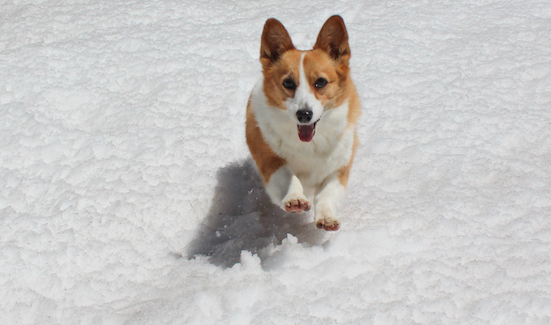 與巧比穿越積雪登高望見山巒美景