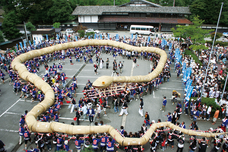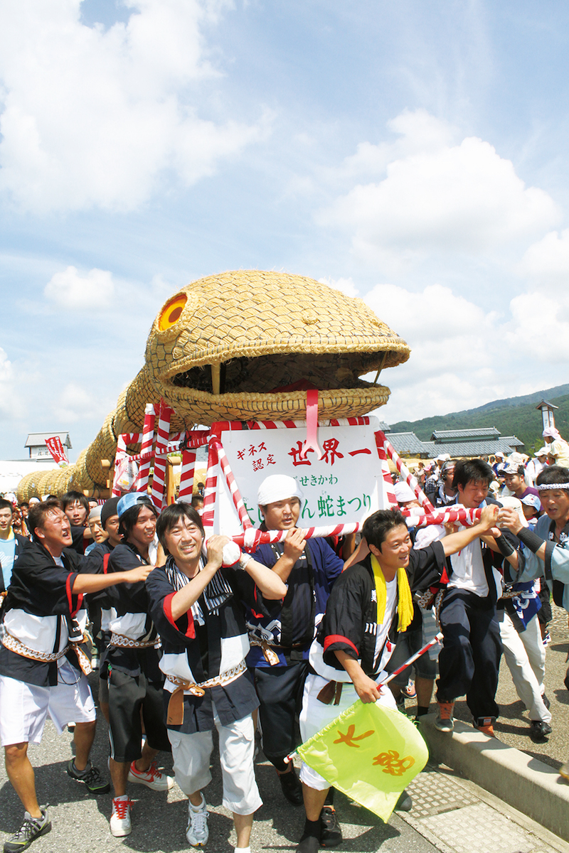 為了向後世傳達當地曾遭逢洪害的警示,自1988年開始舉行的祭典,特色是由當地居民手工製作,長80公尺以上,重2噸左右的竹藁大蛇。祭典當天由500位居民輪流扛著大蛇步行遊街,最後則在關川村公所前,將蛇盤成一團後結束,徹底展現全村民團結一致的精神。