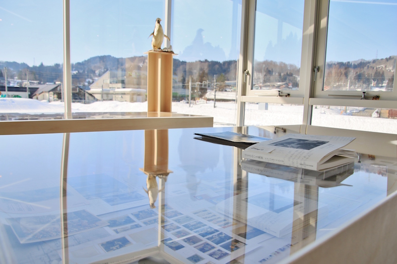 雖然因為冬天的關係,沒機會欣賞到《花咲ける妻有》和《棚田》等作品,但仍有其他藝術創作值得細細品味。Jean-Luc Vilmouth的《Café Relfet》就設置在館內的「里山食堂」內,他請當地居民費時1年,透過自家窗戶拍下四季景觀,再精選照片裝飾在食堂照明旁,透過鏡面桌子倒映出松代的自然風光,讓你可以一邊品嘗當地新鮮食材調理而成的美味料理,一邊欣賞美景。