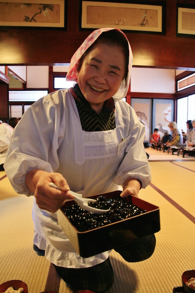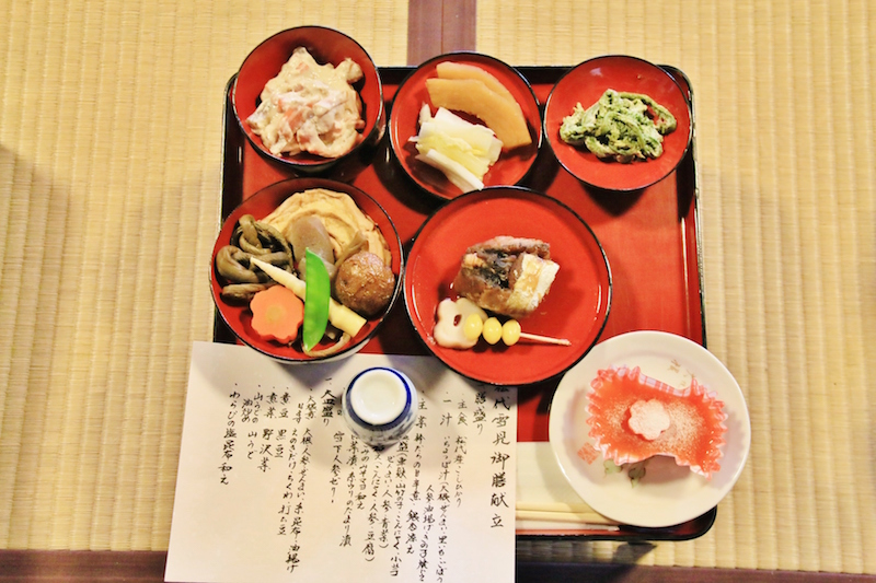 整個2天1夜的套裝行程在結束清津峽溪谷隧道的參觀後接近尾聲,為了體驗雪國文化,我們再次前往農舞台附近的「松代鄉土資料館」。擁有140年歷史的櫸木木造民家,展示著過去當地使用的民生用品和生活文化,這裡也成為當地居民招待遠道而來的觀光客享用「雪見御膳」的地方。熱情的地方媽媽為了招待我們,可是使出全身武藝,不藏私地大方分享家常美味料理。