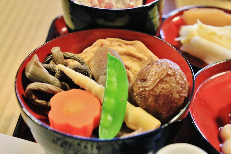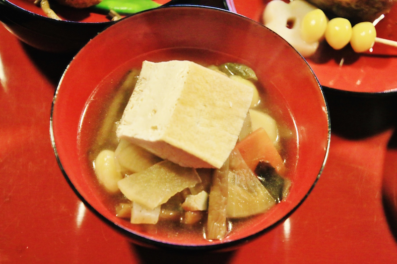 雪見御膳,其實是當地居民利用生活在雪國的智慧,從收藏食材到調理適合嚴冬食用的美食,還有當地自古流傳下來的鄉土料理的集大成。像是松代地區的鄉土料理「いちょっぱ汁(ichoppa jiru)」,是在喜慶宴席中才會端出來招待客人的美食。其名由來據傳是因為料理中的根莖類蔬菜都會切成像銀杏葉一樣的形狀而得名(銀杏葉的日文為イチョウの葉っぱ,icho no happa),是一道相當費功夫的料理,湯汁中喝得到蔬菜的鮮甜味,嘗得到樸實的美味。另外,還有利用埋藏在雪地裡的紅蘿蔔和白蘿蔔,以及其他食材一起調理而成的料理,透過雪藏的加持,讓這些蔬菜變得更加鮮甜,作出來的料理自然美味不在話下。
