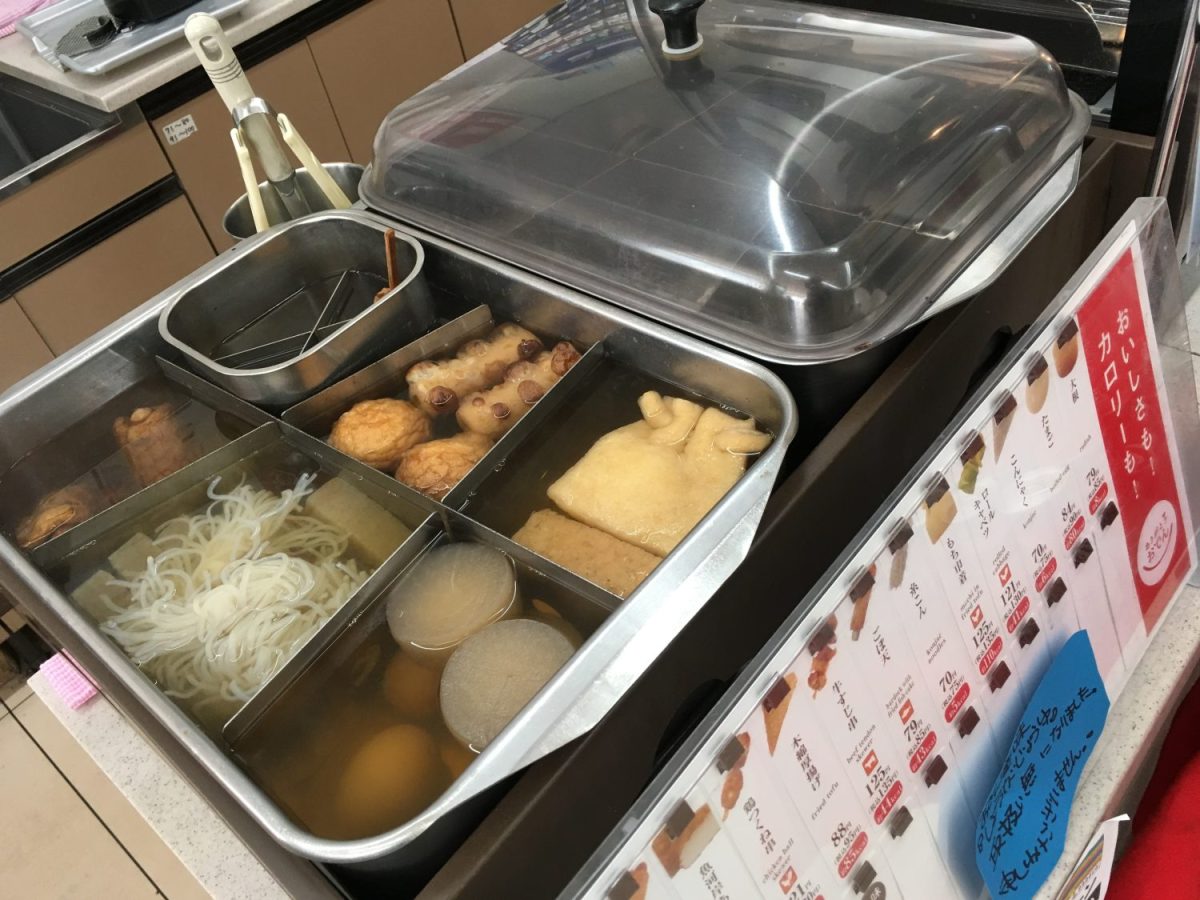 被他這麼一說,好像也有點道理。日本超商關東煮料跟台灣不太一樣,沒有米血糕、貢丸、魚卵捲,架上也沒有放科學麵,有些超商還是要請店員幫忙夾料,無法自己舀湯。就算自己舀,量也不多。