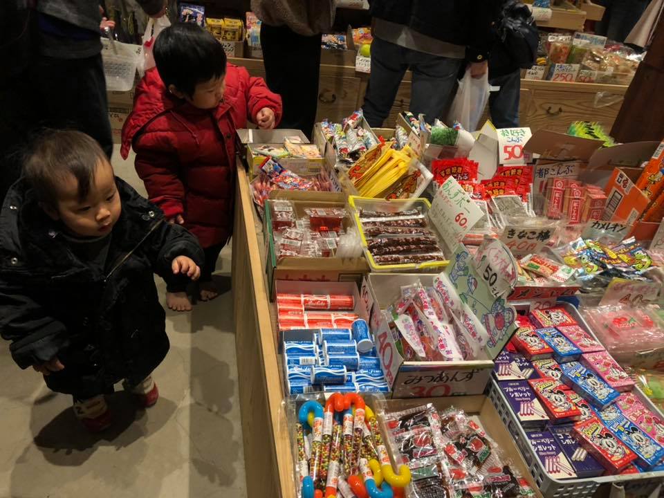 回到川越老街,我們沈溺在這片不同於都市的懷舊風景中,原本以為兩個小孩還會多睡一會兒,沒想到川越的烤蕃薯香讓兩個人都從沉睡中甦醒,並且不顧這條長長地排隊人龍,也要堅持排上20分鐘左右的隊伍,就為了一嘗這相當具有特色的在地美食。