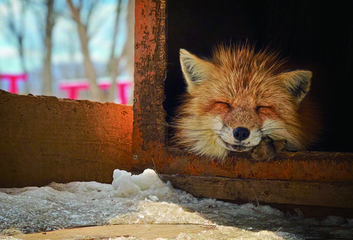 宮城藏王狐狸村採放養的方式,共飼養了約1百多隻狐狸,除了常見的北海道赤狐,還有稀有的銀狐、藍狐、白金狐、影狐和十字狐等。狐狸會在冬天穿上蓬鬆柔軟的毛大衣,所以1月造訪時,每一隻都圓滾滾的,可愛極了!只要站在高架餵食區,狐狸就會自動聚集過來,一臉認真的望著你,天生的彎月型鳳眼就像在微笑般,簡直迷死人。若是另外付費,還可抱抱看由園方挑選、個性溫和的狐狸;若在春天到訪,還有機會抱到新生的小狐狸。