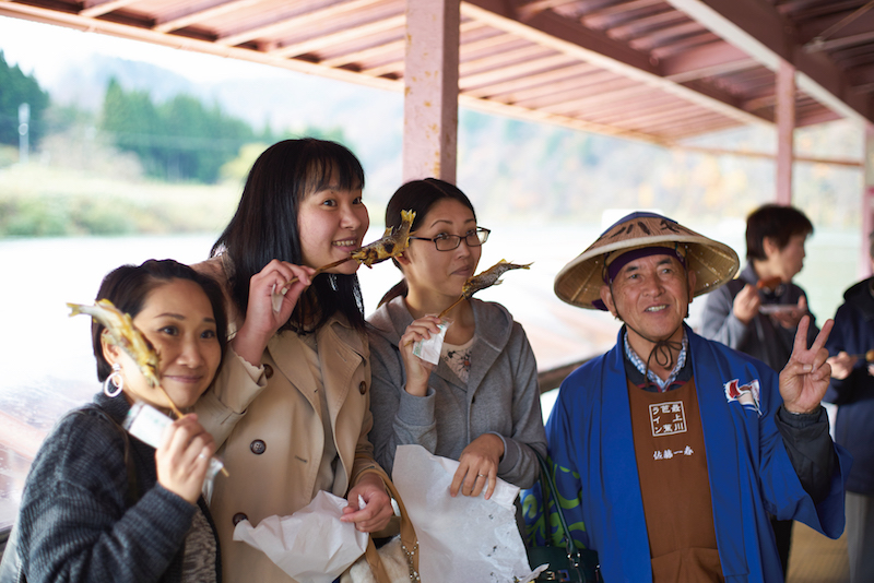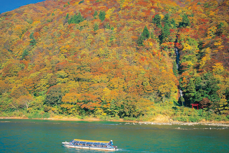 三百年前,松尾芭蕉與河合曾良一同搭船,從最上川順流而下,赴出羽三山賞景。當時梅雨讓最上川變得湍急又凶險,松尾芭蕉信手拈來,留下了一首俳句,讓最上川遊船聞名遐邇。我們也坐上船順著河川而下,一邊悠閒欣賞最上峽兩岸的楓紅,一邊聆聽船夫解說岸邊景色和用當地方言傳唱民謠。遊船中途停靠賣店,還能品嘗鹽烤香魚的美味。對松尾芭蕉來說,乘船或許是不得已的交通工具,但時至今日,遊船卻成了熱門的觀光體驗,這應該是他始料未及的吧!