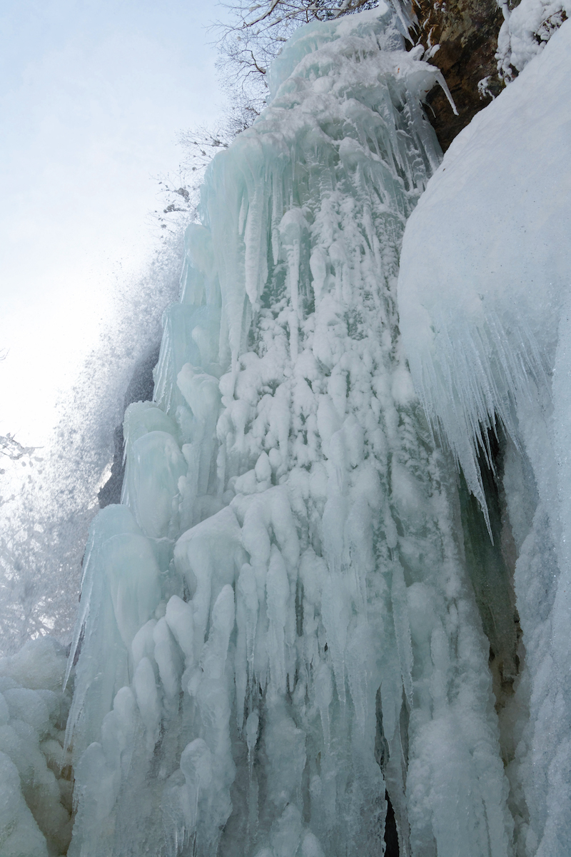 Similar to the Appi Kogen region in winter, the Urabandai area is a wonderland of powder snow, where one can enjoy a myriad of winter activities besides skiing and snowboarding. After a major volcanic eruption of Mt. Bandai in the past, a beautiful crater lake formed ― Lake Hibara. Experience snowmobiling on the frozen lake, or wakasagi smelt ice fishing! Put on your snow shoes and trek through other surrounding attractions including the Goshikinuma trail, or maple-beech forests where you can admire giant beech trees that are over 300 years old.The frozen waterfall “Yellow Fall”, is also a popular spot nearby.