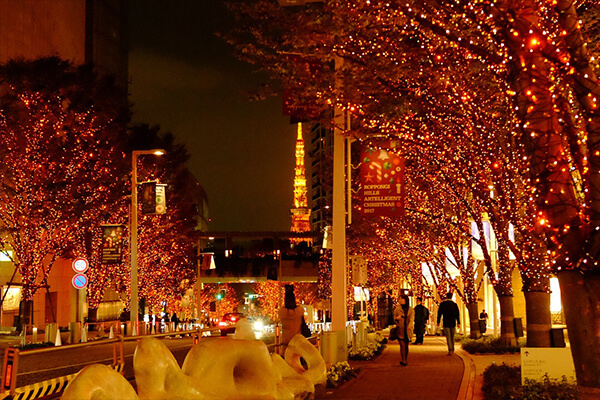Keyakizaka Street in Roppongi is the stage for the main illumination display at Roppongi Hills Artelligent Christmas. The 65 trees in the area were decorated with 1.2 million LED lights; turning this street into white and blue, and at special times, into warm amber. Besides the illumination on Keyakizaka street, don’t miss out on other interesting spots: Mohri Garden, Roku-Roku Plaza and West Walk.